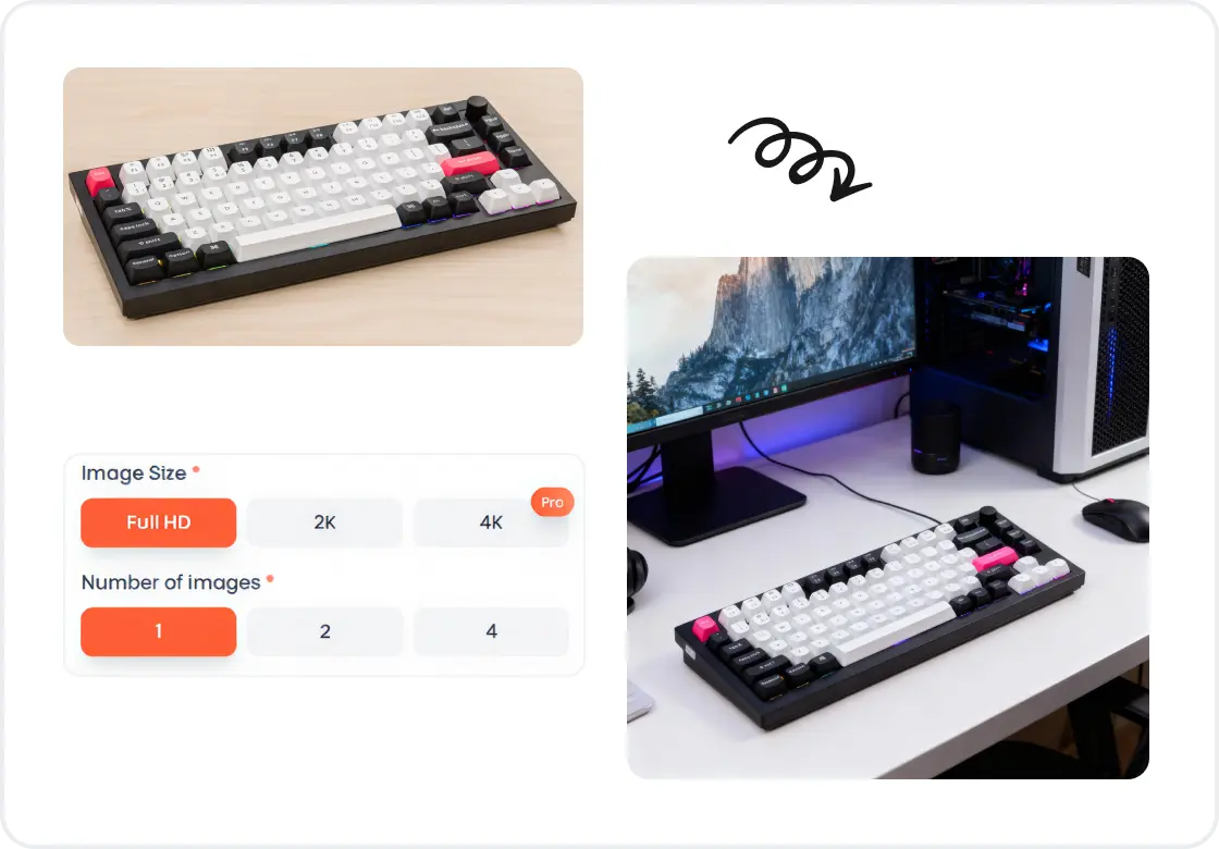 Just drop in one product photo. No fancy setup required—your phone camera works perfectly.